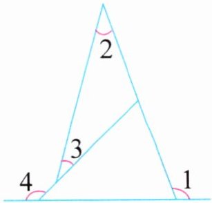 如图,已知 $ \angle 1 = 110 ^ { \circ } $,$ \angle 2 = 35 ^ { \circ } $,$ \angle 3 = 30 ^ { \circ } $,则 $ \angle 4 $ 的度数是多少?