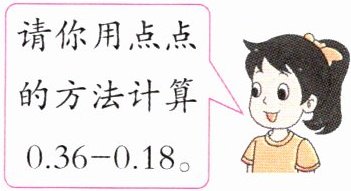 8. $0.36 - 0.18 = (36个\frac{1}{100}) - (18个\frac{1}{100})$ $= 18个\frac{1}{100}$ $= \frac{18}{100} = 0.18$