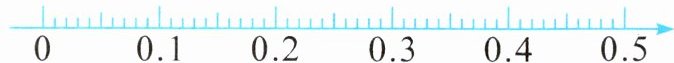 (6)大于$0.3而小于0.5$的两位小数有( )个;大于$0.3而小于0.5$的小数有( )个。