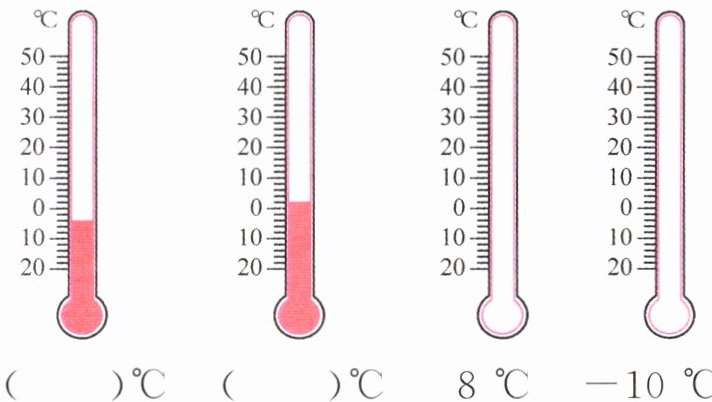 3. 先写出左边两支温度计上显示的温度,再在右边两支温度计上表示相应的温度。