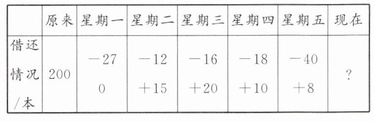 1. 新情境 真实生活 下面是五年级一班图书角一星期图书借出和还入情况的记录表。(借出图书记为负,还入图书记为正)