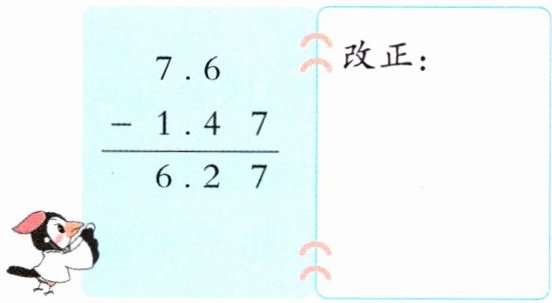 1. 小丽在计算一道小数减法算式时,把被减数十分位上的3看成了8,把减数百分位上的2看成了7。正确答案与错误答案相差多少?