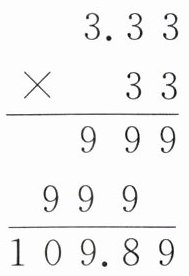一丈约等于现在的3.33米,列式计算33丈是多少米(如右式),则上面的999表示999个( ),下面的999表示( )丈是( )米。