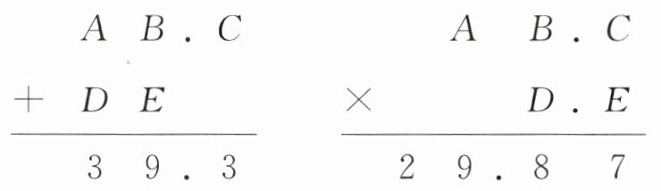 7. 亮点原创 在计算两个一位小数相加时,图图把其中一个加数的小数点看漏了,如下左图;亮亮把加号看成了乘号,如下右图(省略中间过程)。正确的计算结果应该是( )。
