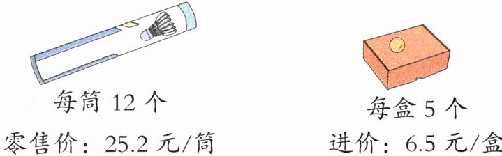 羽毛球每个盈利:$25.2÷12 - 1.8 = 0.3$(元)