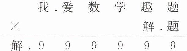 3. 新素养 推理意识 在下面的乘法竖式中,相同的汉字代表相同的数字,不同的汉字代表不同的数字,则我= ( ),爱= ( ),数= ( ),学= ( ),趣= ( ),题= ( ),解= ( )。