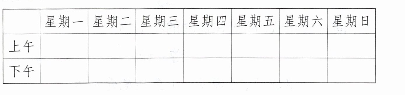 九、生命在于运动。每天运动一小时,暑假也不要忘了哟。制订一个简单的运动计划表,按照自己的计划,开始锻炼起来吧!