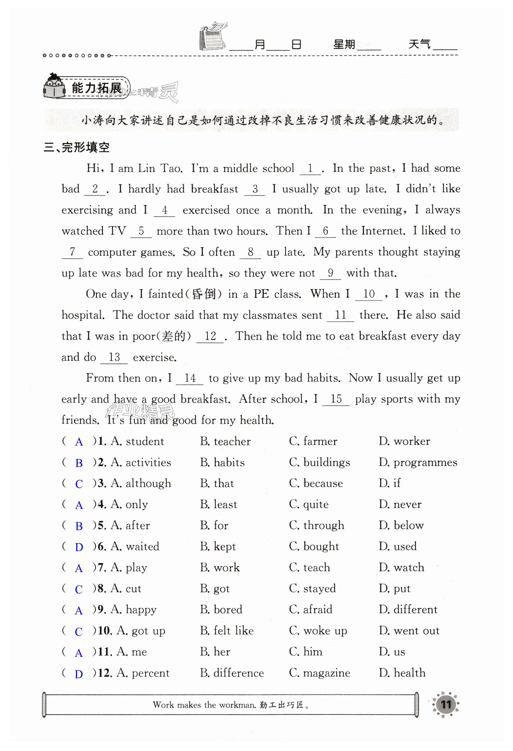 注:目前有些书本章节名称可能整理的还不是很完善,但都是按照顺序排列的,请同学们按照顺序仔细查找。练习册 2025年长江暑假作业七年级英语崇文书局 答案主要是用来给同学们做完题方便对答案用的,请勿直接抄袭。