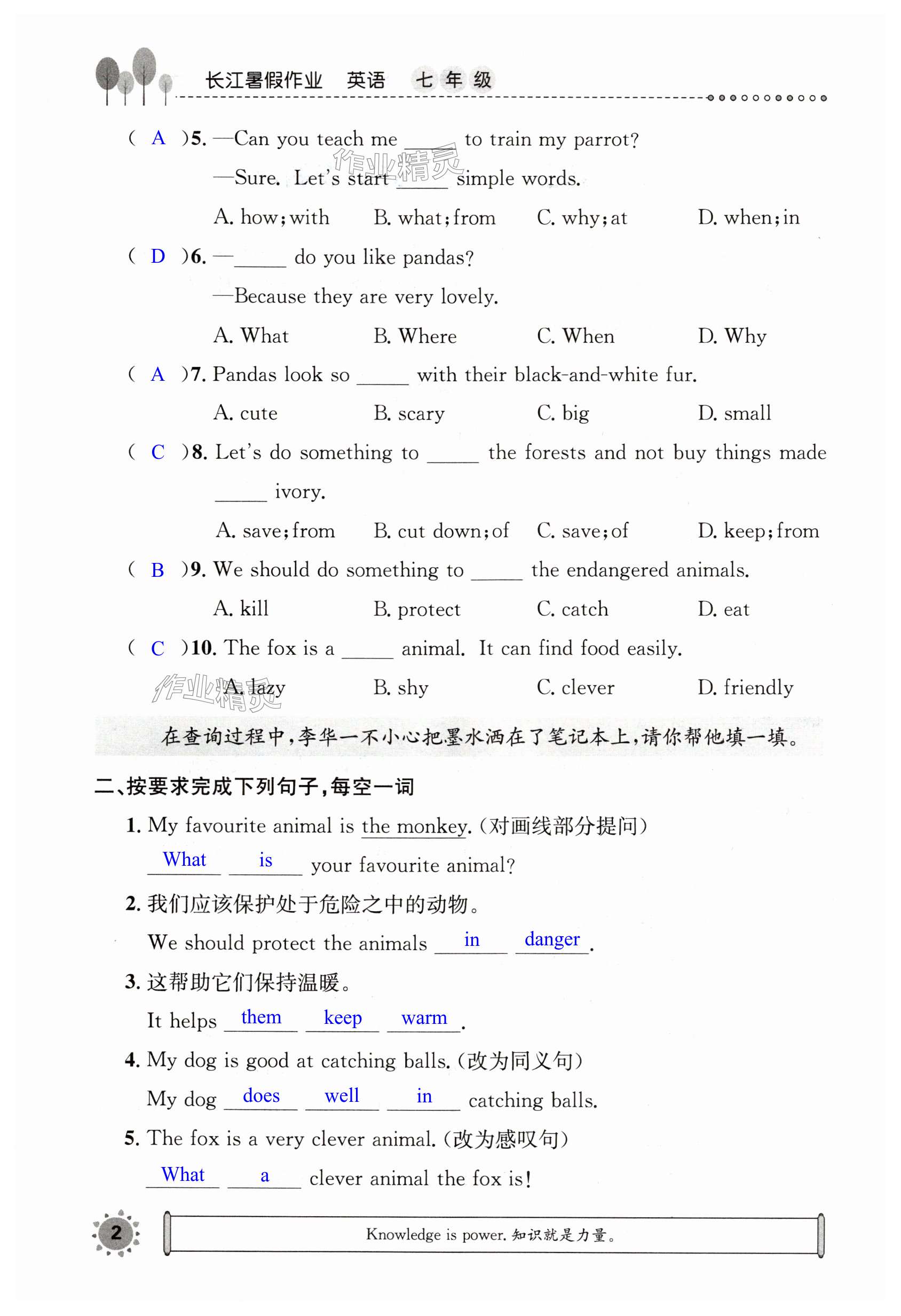 注:目前有些书本章节名称可能整理的还不是很完善,但都是按照顺序排列的,请同学们按照顺序仔细查找。练习册 2025年长江暑假作业七年级英语崇文书局 答案主要是用来给同学们做完题方便对答案用的,请勿直接抄袭。