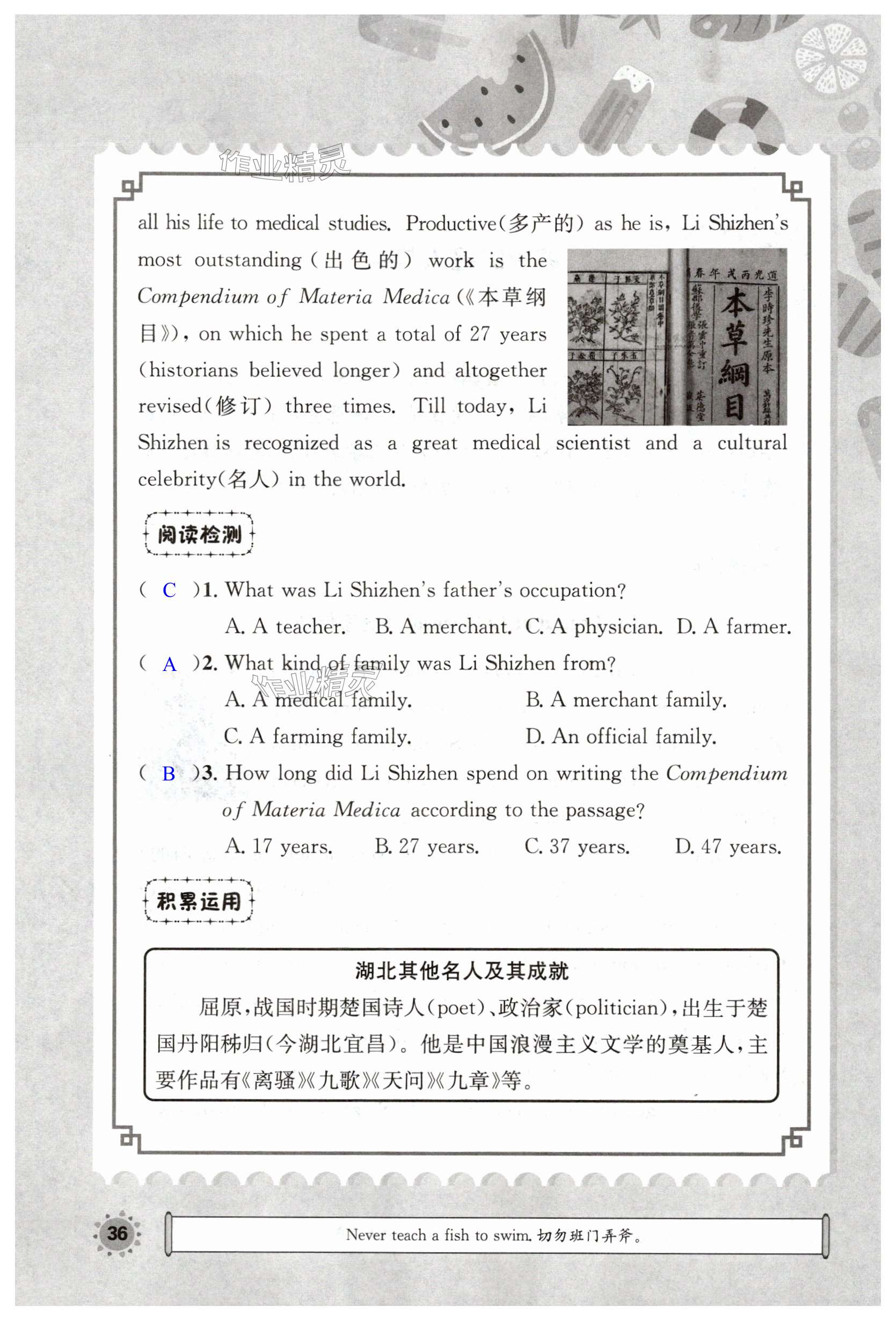 注:目前有些书本章节名称可能整理的还不是很完善,但都是按照顺序排列的,请同学们按照顺序仔细查找。练习册 2025年长江暑假作业七年级英语崇文书局 答案主要是用来给同学们做完题方便对答案用的,请勿直接抄袭。