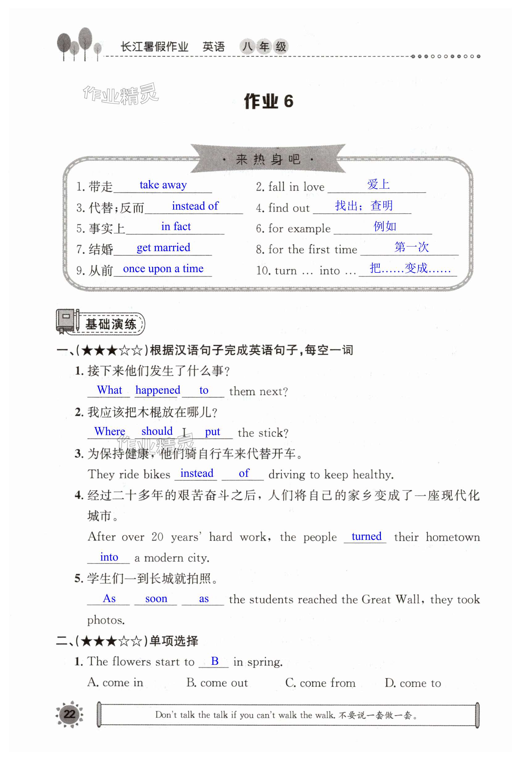注:目前有些书本章节名称可能整理的还不是很完善,但都是按照顺序排列的,请同学们按照顺序仔细查找。练习册 2025年长江暑假作业崇文书局八年级英语 答案主要是用来给同学们做完题方便对答案用的,请勿直接抄袭。