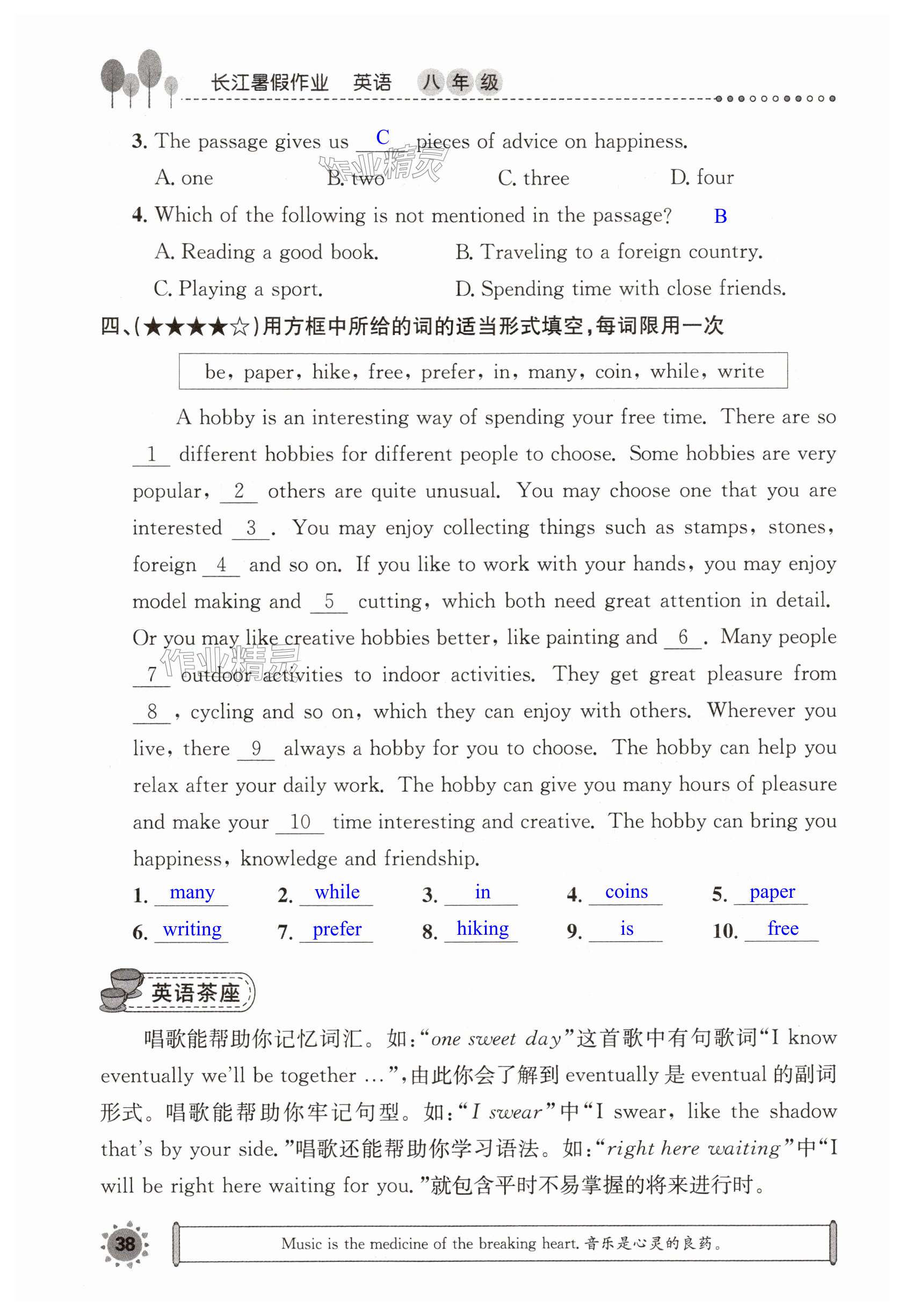注:目前有些书本章节名称可能整理的还不是很完善,但都是按照顺序排列的,请同学们按照顺序仔细查找。练习册 2025年长江暑假作业崇文书局八年级英语 答案主要是用来给同学们做完题方便对答案用的,请勿直接抄袭。