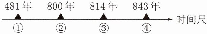 【解析】:本题主要考查对西欧历史事件时间节点的记忆。解题关键在于熟悉法兰克王国相关历史事件的发生时间,并与时间尺上的时间进行对应。