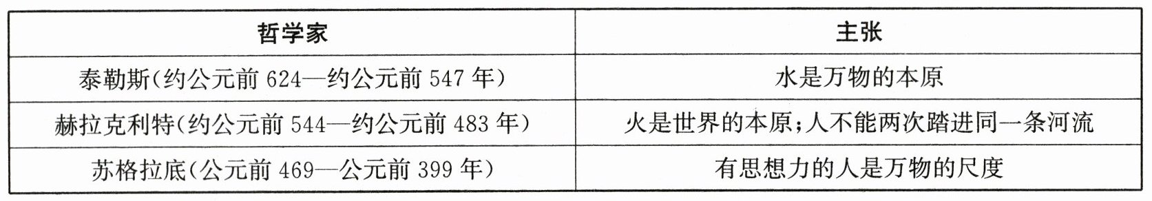 12. 下表所示为古希腊部分哲学家及其主张。表中信息反映了古希腊哲学(
