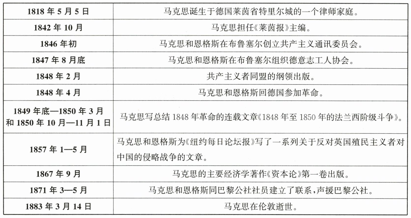 材料 卡尔·马克思年谱。