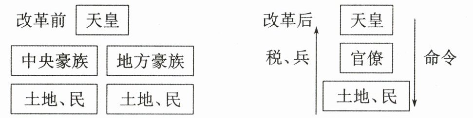 【解析】:本题可根据大化改新前后的统治结构示意图,结合大化改新的相关知识,对各选项进行逐一分析。