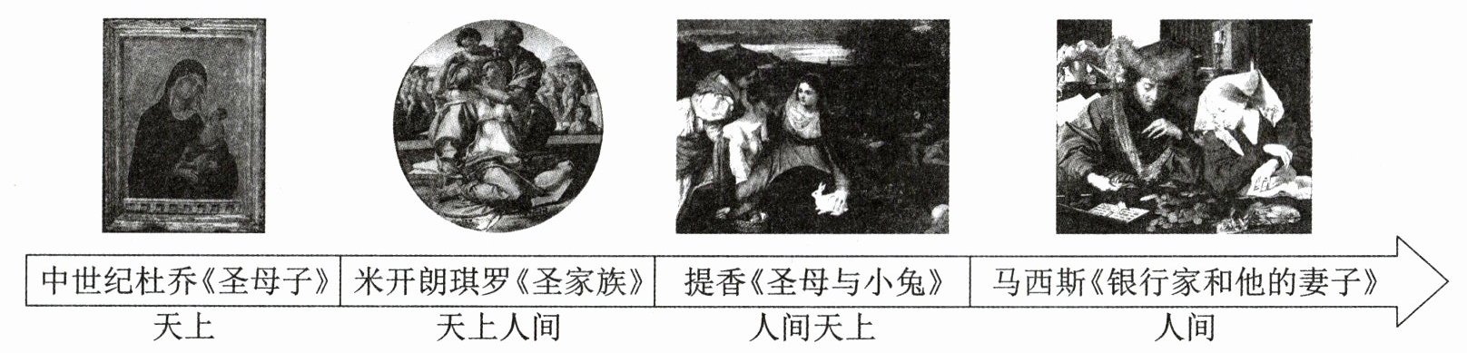 14. 观察以下14—16世纪西方绘画艺术的发展历程示意图。其中最突出的特点是 (