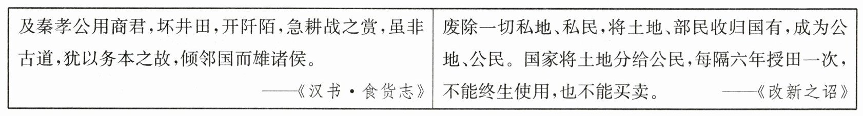 本题考察的是对中、日两国历史上改革措施的理解与对比。从题干中我们可以看到,中国秦孝公时期的商鞅变法废除了井田制,开阡陌,即废除了土地国有制度,允许土地买卖,实行土地私有化;而日本的《改新之诏》中提到废除一切私地、私民,将土地、部民收归国有,成为公地、公民,这也是对土地所有制的一种改革。