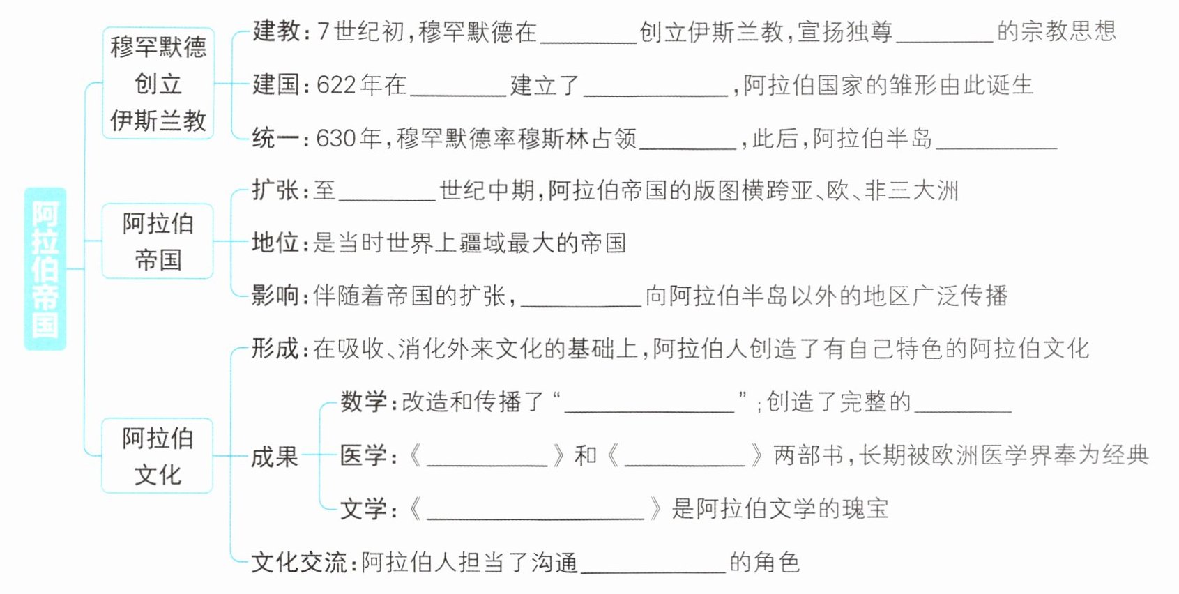 3. (教材P57“相关史事”改编)阿拉伯帝国实行哈里发中央集权统治,哈里发不仅是帝国的最高元首,也是全体穆斯林的宗教领袖。这说明阿拉伯帝国的性质是(