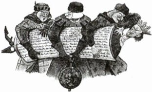 15. 如图是一幅描绘1215年英王与贵族签订《大宪章》的漫画。画中贵族们用《大宪章》紧紧地裹挟着国王,国王的手脚被牢牢束缚。这幅漫画表明 (