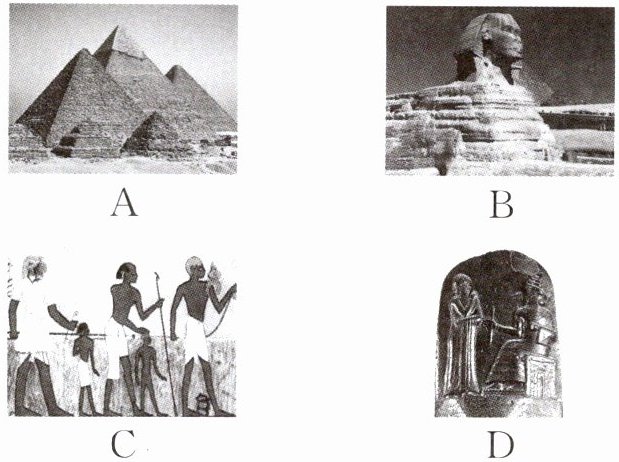 选项B,狮身人面像也是古埃及的文明成果,不属于古代两河流域,故B错误。