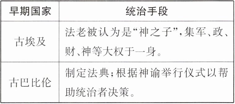 7. 下面为世界古代史上两个早期国家的统治手段简况表。据此可知,其统治的共性是(