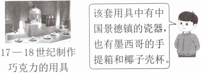 (2)原因:新航路开辟后,世界开始连成一个整体,全球贸易逐渐发展起来。中国景德镇瓷器远销海外,墨西哥的手提箱和椰子壳杯也通过贸易传播到其他地区,体现了全球贸易的交流与融合。
