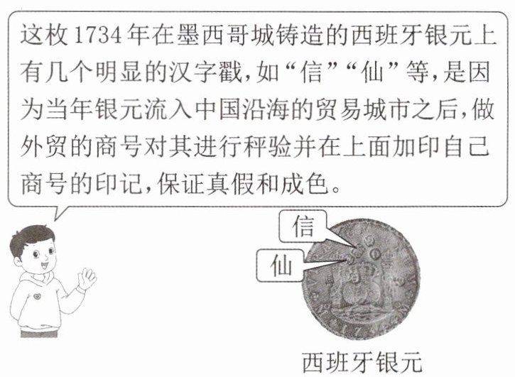 历史信息:新航路开辟后,西班牙银元流入中国沿海贸易城市,中外经济交流频繁;中国外贸商号对银元进行检验和标记,以保证其真实性和成色。