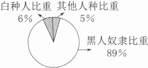 题干给出了海地革命前夕(1789年)人口结构示意图,从图中可以看到白种人比重6%,其他人种比重5%,黑人奴隶比重89%。