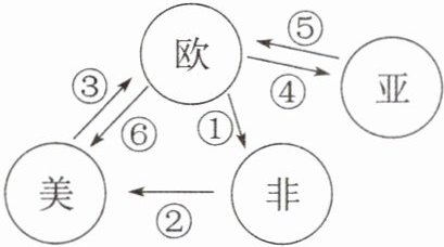 3. 16—18世纪,世界各地的经济贸易联系日益密切。下面示意图中的箭头表示人员和物品流动的方向,①②③④⑤⑥表示人员或物品。其中,③所代表的主要物品是 (