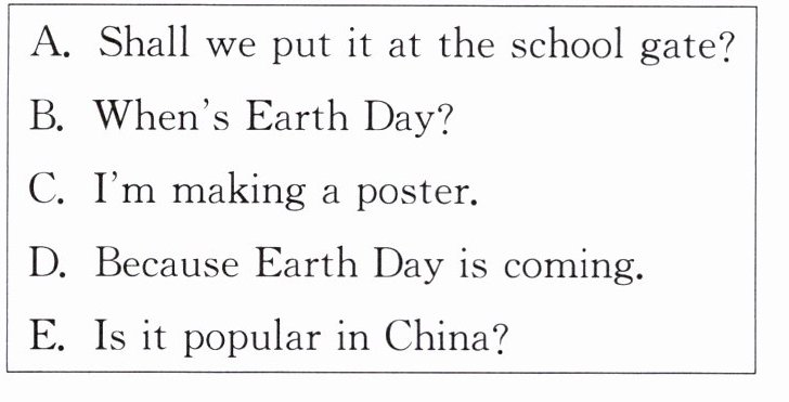 二、1. all the students 2. tell me about your school 3. start drawing 4. make a poster 5. the rubbish bin under the tree 6. put the poster on the school gate