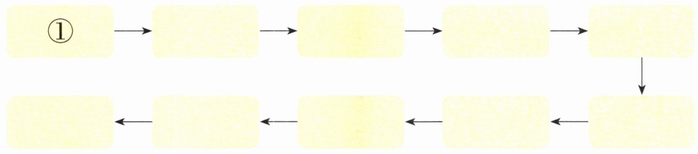 3 小小的饼干在到达人们的手中前,依次经历了哪些劳动环节呢?请根据短文内容,将序号填入下面的流程图中。