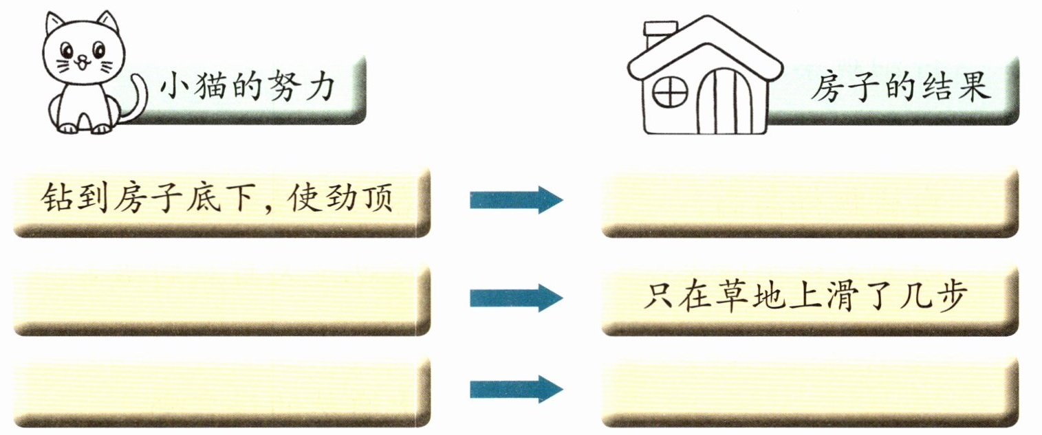 2 小猫是如何把小房子搬过来的?阅读短文,完成图示。