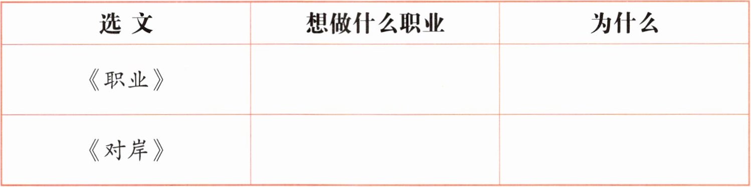 2 两篇选文都是写“我”想做什么职业,请对比阅读两篇选文,并完成表格。