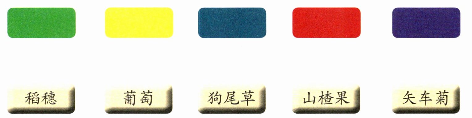 于是,金色的稻穗(suì)、绿色的狗尾草、蓝色的矢(shǐ)车菊和红色的山楂果……全都