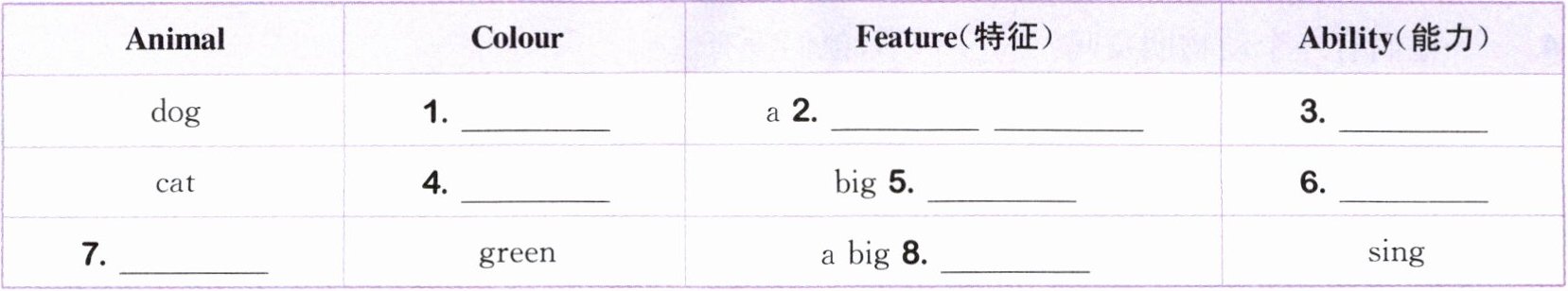 1. brown 2. short tail 3. run 4. orange 5. ears 6. jump 7. parrot 8. mouth