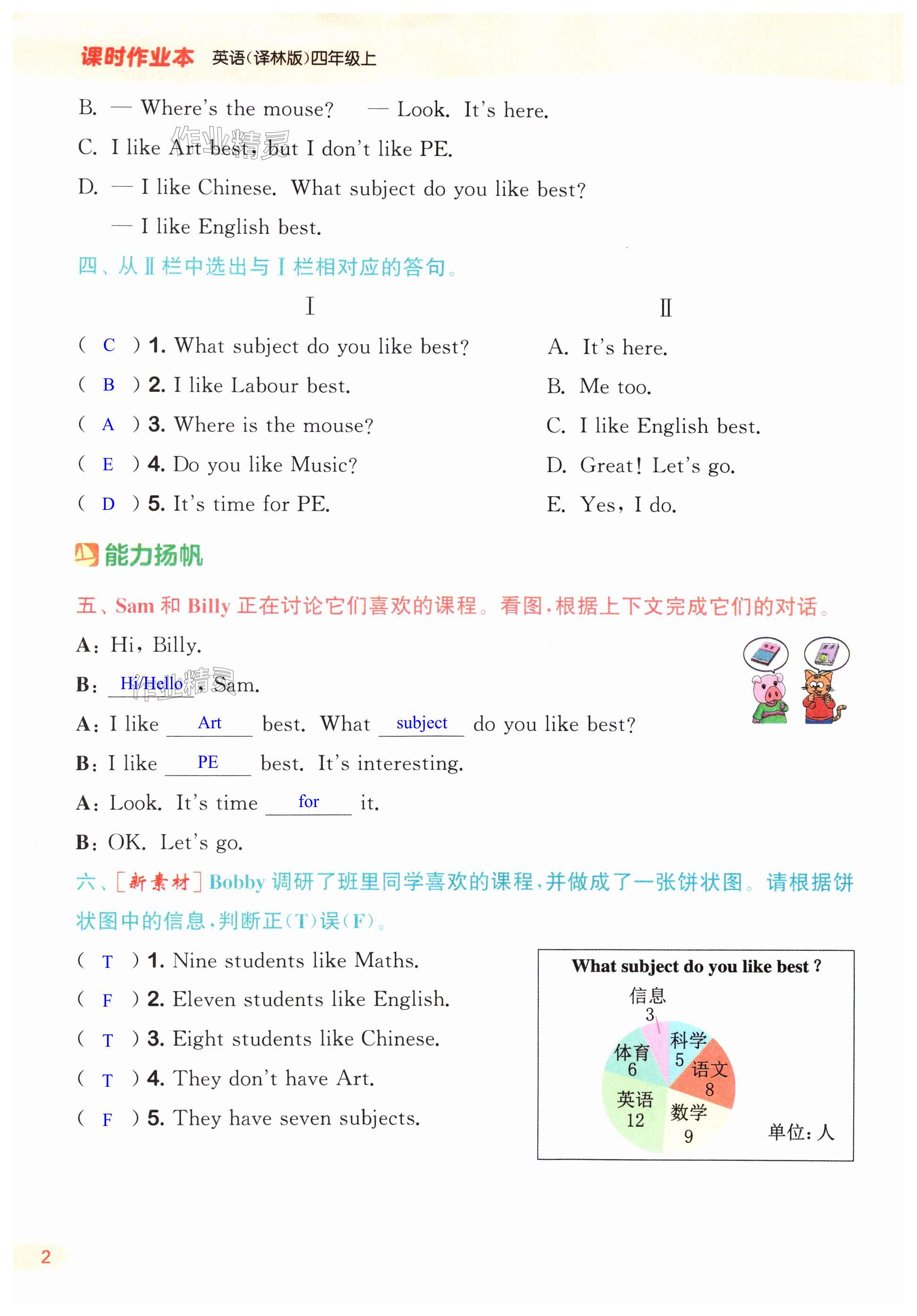 注:目前有些书本章节名称可能整理的还不是很完善,但都是按照顺序排列的,请同学们按照顺序仔细查找。练习册 2025年通成学典课时作业本四年级英语上册译林版江苏专版 答案主要是用来给同学们做完题方便对答案用的,请勿直接抄袭。