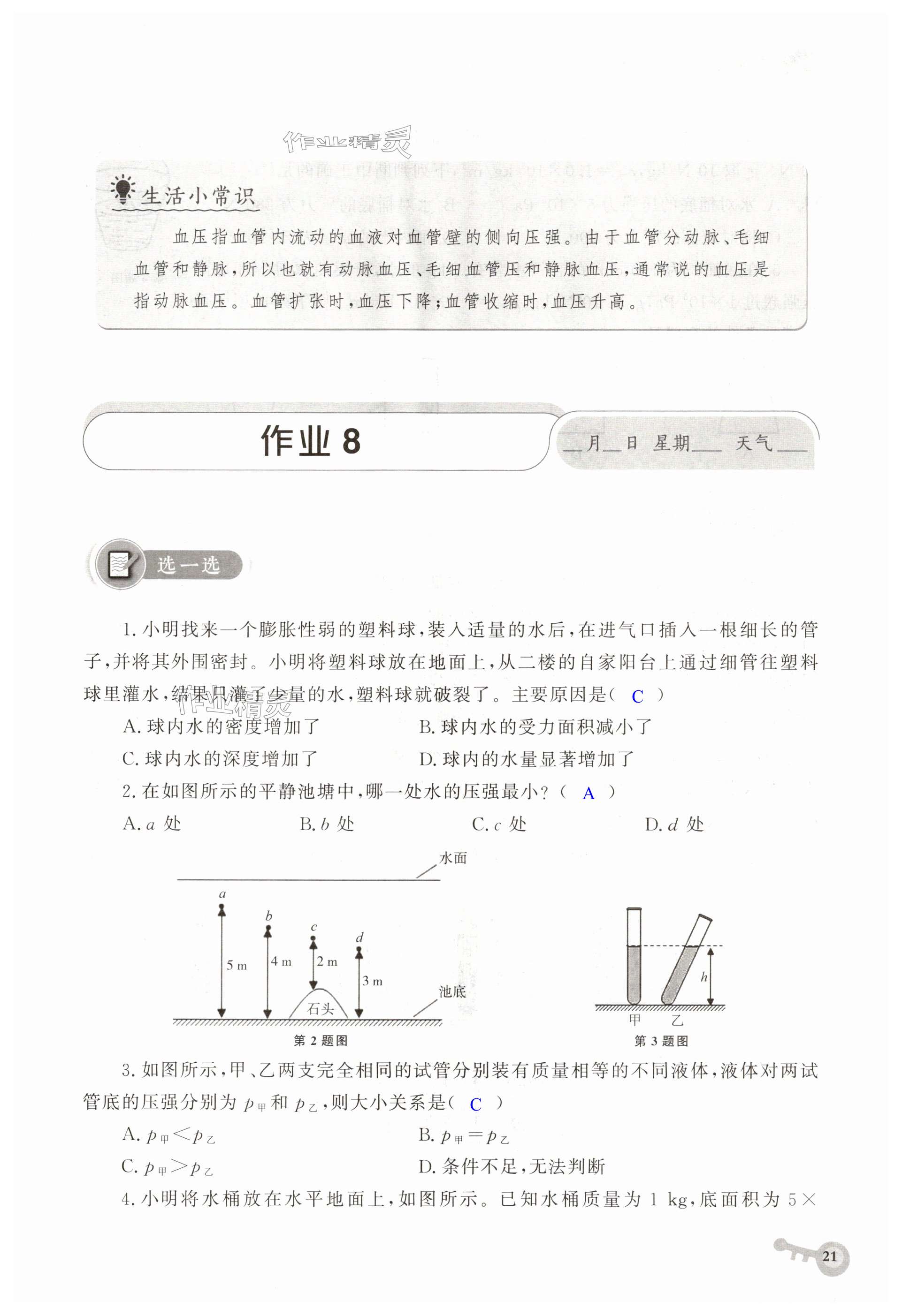 注:目前有些书本章节名称可能整理的还不是很完善,但都是按照顺序排列的,请同学们按照顺序仔细查找。练习册 2025年暑假作业华中科技大学出版社八年级物理人教版 答案主要是用来给同学们做完题方便对答案用的,请勿直接抄袭。