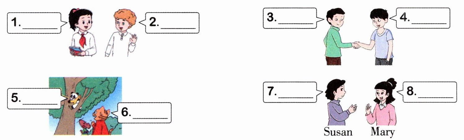 五、选择合适的句子组成对话,填入图片中的对话框。