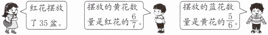 1. 新情境 生活应用 为迎接国庆节,苏州园林在入口处摆放了三种颜色的花。蓝花摆放了多少盆?