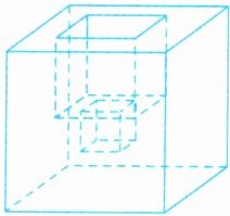 5. 如图所示为一个棱长为4厘米的正方体,从正方体上面正中间向下挖一个棱长是2厘米的正方体小洞,接着从小洞的底面正中间再向下挖一个棱长是1厘米的正方体小洞,最后得到的图形的表面积是多少平方厘米?