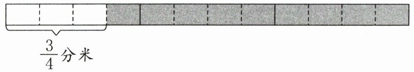 1.如图,把一条彩带每$\frac{3}{4}$分米剪一段,可以剪成多少段?下面列式正确的是( )。
