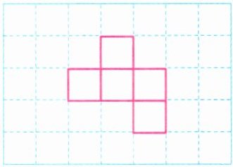 6. 下面这张长方形纸已经被折成若干个同样大小的正方形,请你沿折痕将它剪成几个部分,使每个部分都能折成一个无盖的正方体纸盒。请将裁剪方案在图上画出来。