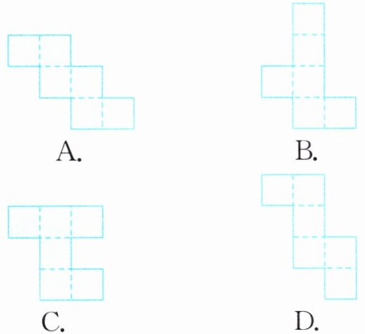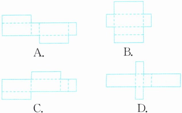 (2)下面的图形中,沿虚线折叠后能折成长方体的是( )。