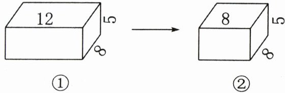 2. 如图(单位:cm),改变长方体①的长,变成长方体②,下面的说法中,正确的是( )。