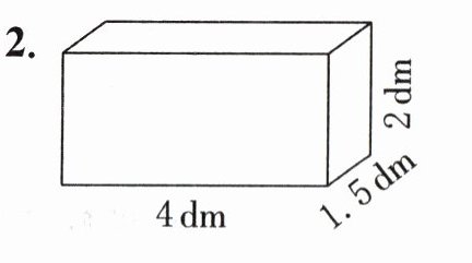 1. 表面积:$11×11×6=726(cm^{2})$ 体积:$11×11×11=1331(cm^{3})$ 2. 表面积:$(4×1.5+4×2+1.5×2)×2=34(dm^{2})$ 体积:$4×1.5×2=12(dm^{3})$