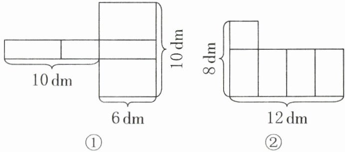 ①号铁桶:$10 - 6 = 4(dm)$ $10 - 4×2 = 2(dm)$$6×10 + 10×2 = 80(dm^{2})$ $6×4×2 = 48(dm^{3})$②号铁桶:$12÷4 = 3(dm)$ $8 - 3 = 5(dm)$$12×5 + 3×3 = 69(dm^{2})$ $3×3×5 = 45(dm^{3})$$80>69$ ①号铁桶使用铁皮较多$48>45$ ①号铁桶能装较多水