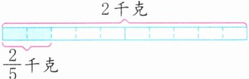 从图中分一分可以知道,2千克里有( )个$\frac {2}{5}$千克,所以$2÷\frac {2}{5}= $( )。