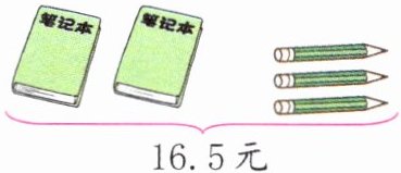 ② 假设买的都是笔记本,那么要比16.5元多花( )元,买5本笔记本一共要( )元,1本笔记本( )元,1支铅笔( )元。