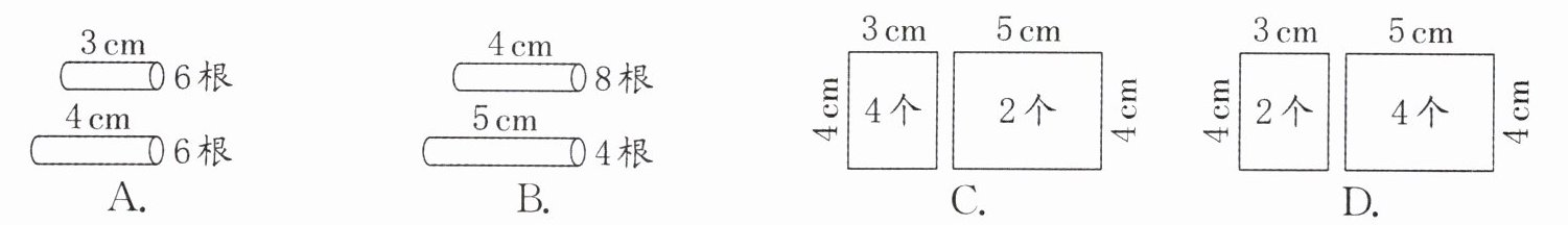4. 下面选项提供的材料正好能拼成长方体模型的是( )。